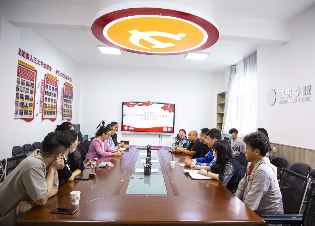 为深入学习开展纪律教育学习宣传月活动,9月21日下午,音乐学院在高新校区艺术楼206会议室开展“严守纪律规矩,加强作风建设”党日活动,本次活动由教工党支部书记吕博主持。