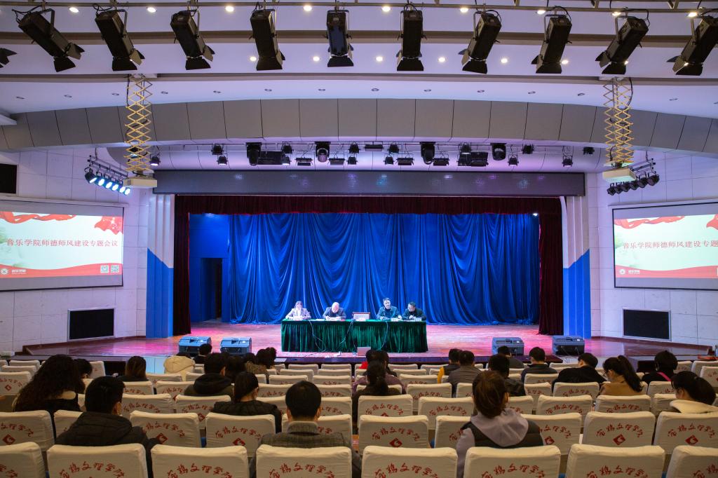 11月23日,我院在音乐厅召开“音乐学院师德师风建设专题会议”,院长魏安石,副书记、副院长樊振宇,副院长王飞及全体教职工参加了会议。会议由党委书记黄玮主持。