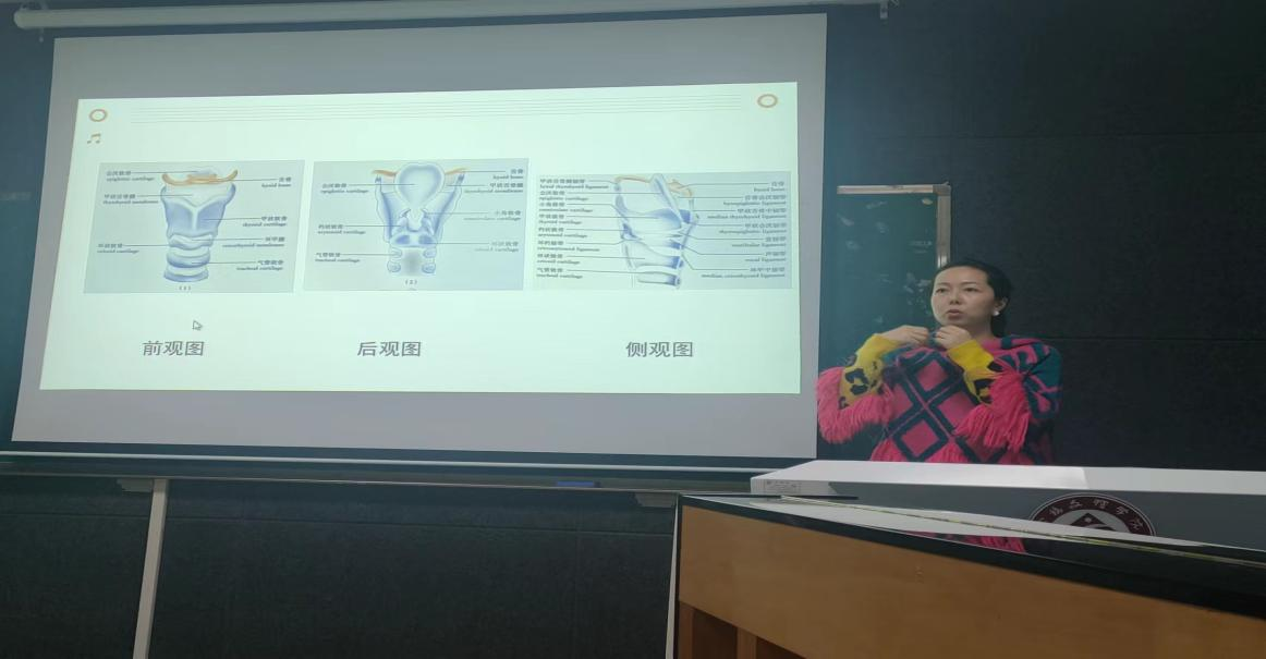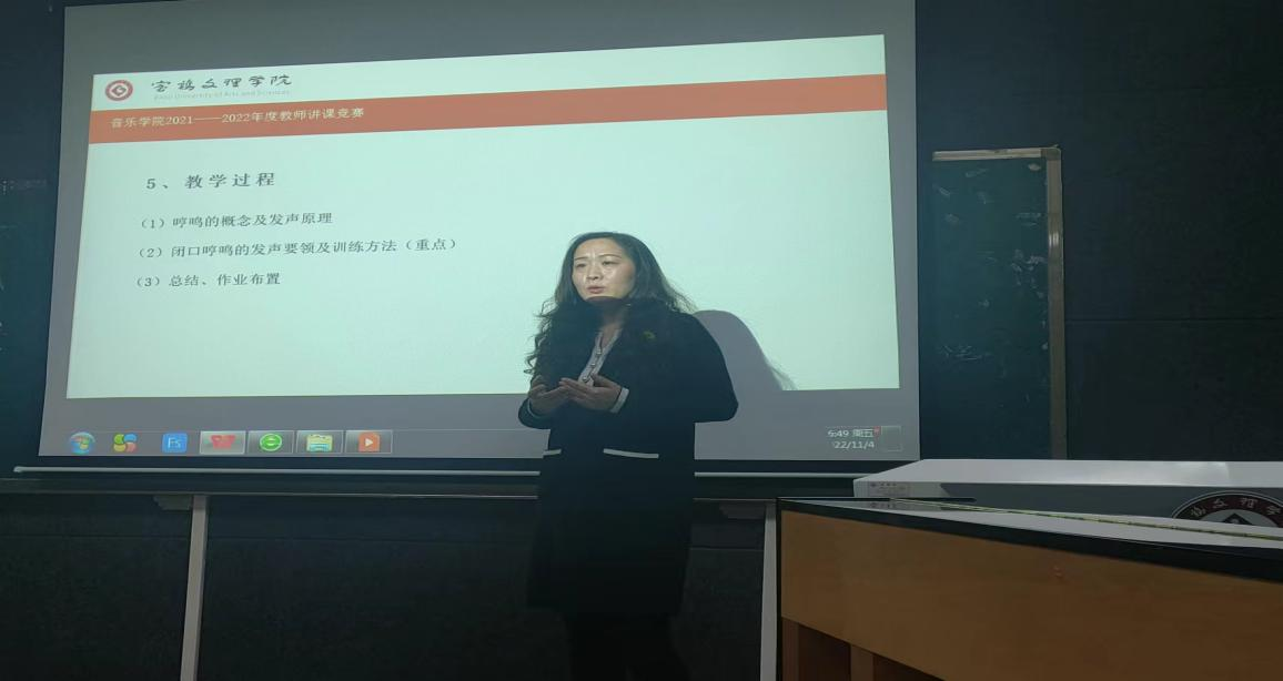 本次比赛共有12位教师参与,各位教师把握声乐技能课课标内容,创新课堂设计,理论与实践相结合,将教学内容高度概括并进行讲解与剖析。教师讲解题目分别为吴婷《歌唱者自身“乐器”的构造》;杜鹏宇《声乐艺术探索式教与学》;严洪萍《动机》;王振宇《声带闭合的训练》;路颖《古诗词歌曲<江城子>的情感表达》;李敏《演唱中的情感表达》;肖虹《闭口哼鸣的发声要领及训练方法》;李媛媛《打开喉咙歌唱》;刘蕾《歌唱中的声与情<红豆词>》;牛雪瑶《<长城永在我心上>的演唱能力提升》。各位参赛老师根据比赛要求,从声乐教学的各个角度进行了讲解,讲述内容层次分明、条理清楚、重点突出,在教法上强调课堂教学中目标制定的导向性、情境创设的趣味性以及课堂互动的多向性,充分展示了我系教师较高的整体素质和扎实过硬的专业教学水平。根据综合评分,由李帆老师、杜鹏宇老师和代表我系参加音乐学院的决赛。