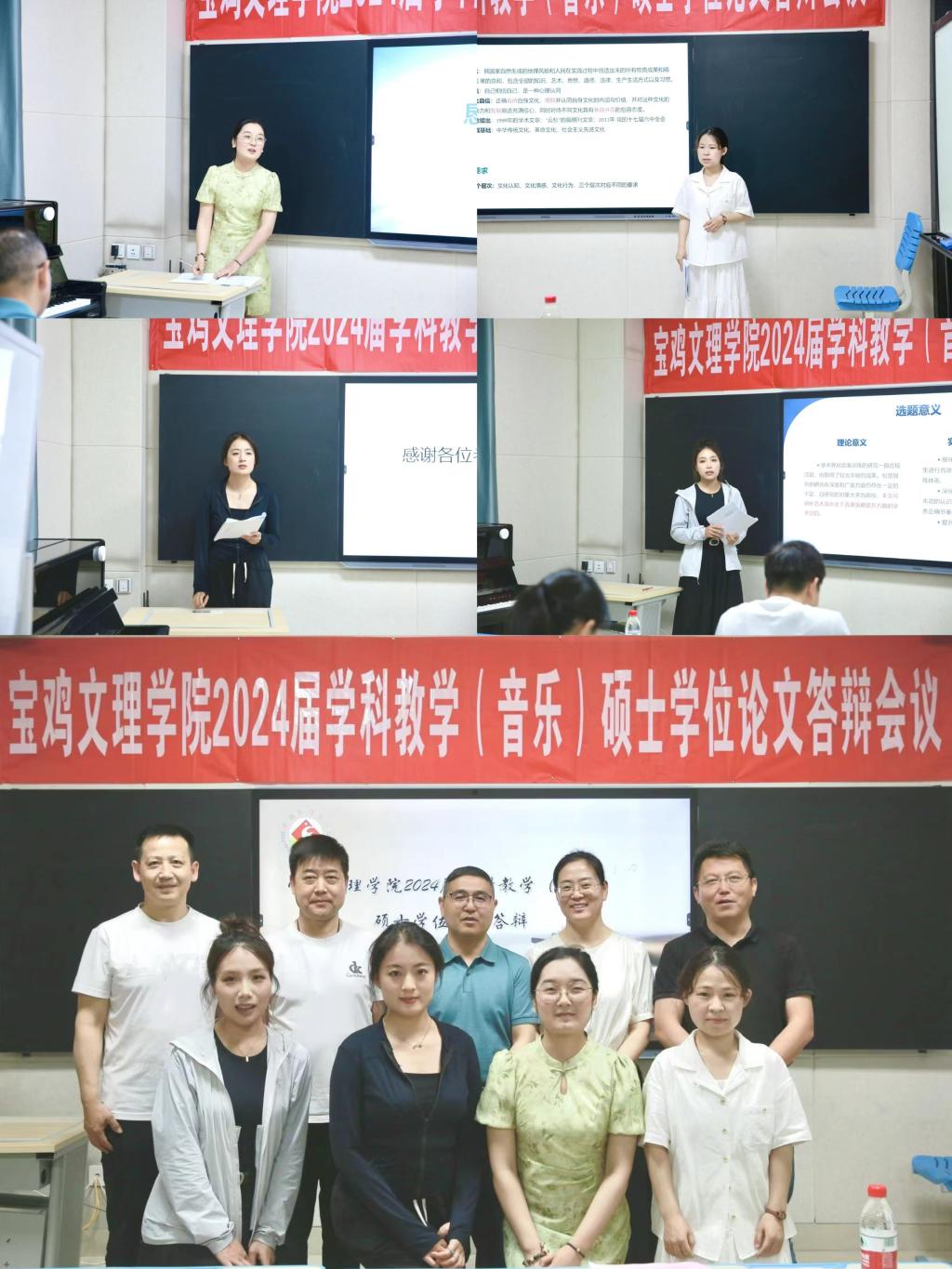 5月24日下午音乐学院在艺术楼202、204、205顺利举行2024届学科教学(音乐)专业硕士研究生毕业论文答辩会。会议由陕西师范大学硕士生导师王维圣副教授、宝鸡文理学院附属学校校长张伟建、宝鸡文理学院教育学院李存生副教授担任3个组答辩主席并主持。我院2024届硕员及2024届硕士研究生参加了会议。