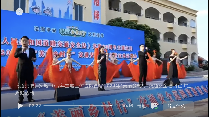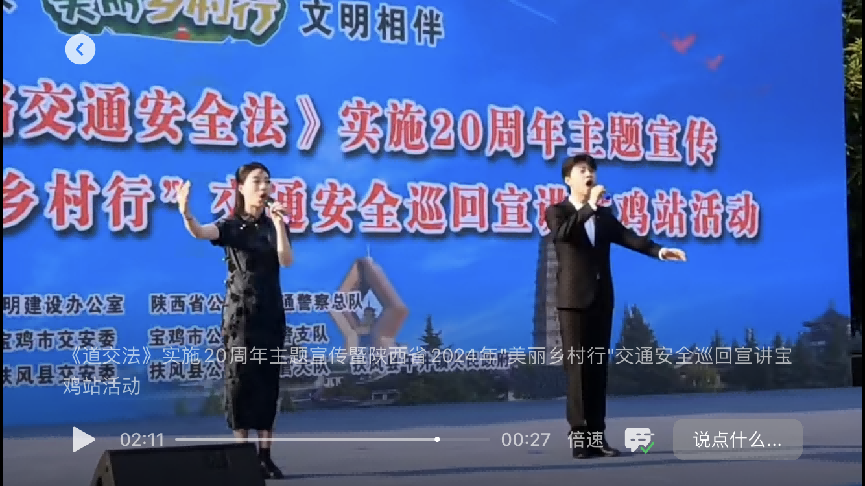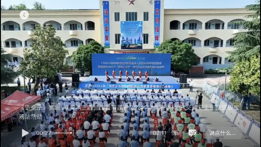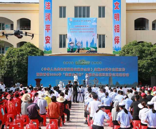 5月24日,由陕西省委文明办、省公安厅交警总队主办,宝鸡市委文明办、市交安委、市公安局交警支队承办,扶风县委文明办、县交安委、县公安局交管大队等多部门协办的《道路交通安全法》实施20周年主题宣传暨陕西省2024年“美丽乡村行”交通安全巡回宣讲活动在宝鸡扶风午井镇安上村举行。公安、交警相关领导,中小学生、文明志愿者,群众及公安交警代表,中省市媒体记者400余人参加活动。