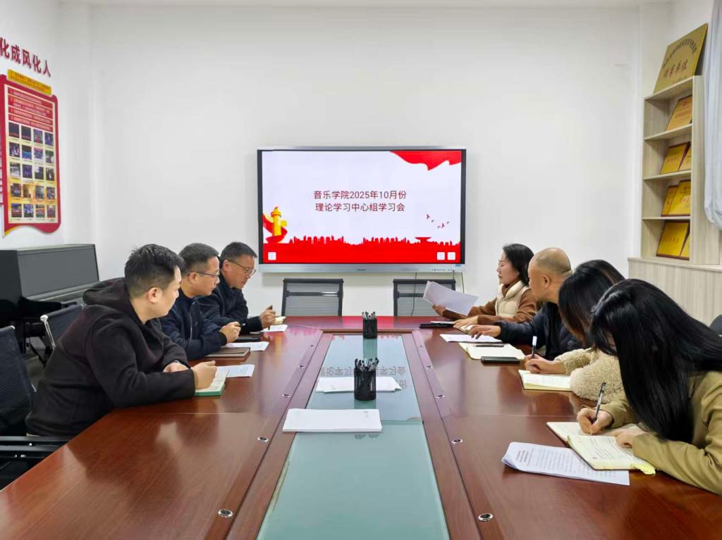 10月23日上午,音乐学院在艺术楼206会议室召开10月份理论学习中心组会议,中心组全体成员参加了会议,会议由党委书记黄玮主持。
