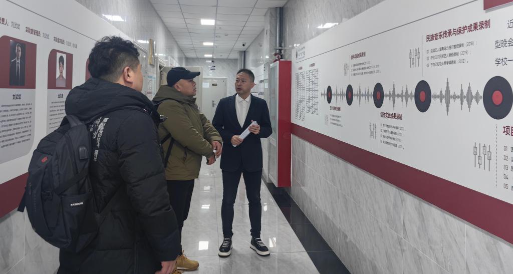 在内蒙古师范大学音乐学院,双方聚焦实践教学与双创教育展开交流。该院依托科研平台构建“课程-项目-舞台”三级实践体系,以“赛事引领+校企孵化”模式培育5个学生创业项目落地。调研团队详细了解实践学分认定、双创课程设置等特色制度。