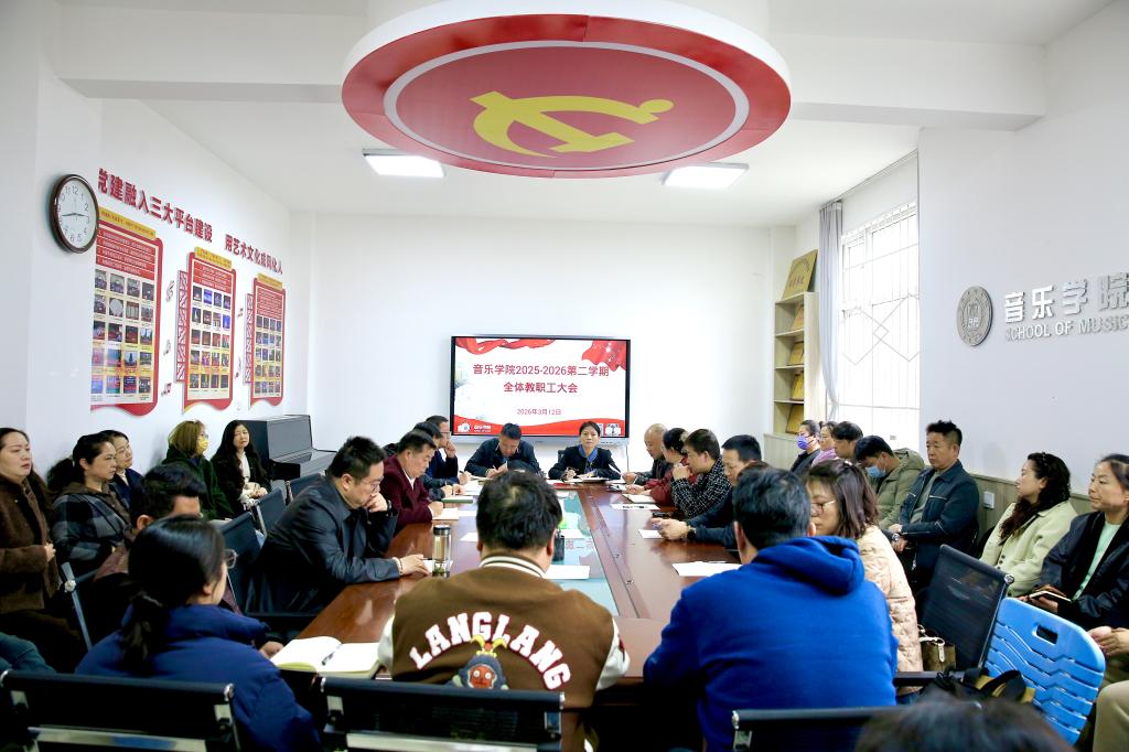 本次会议明确了新学期工作方向,凝聚了全体教职工共识,为音乐学院新学期各项工作的顺利开展奠定了坚实基础。全体教职工纷纷表示,将以此次会议为契机,立足本职岗位,积极投身到学院的建设与发展中,以实际行动践行育人使命,为培养更多优秀的音乐人才、推动学院高质量发展贡献自己的力量。(音乐学院 文/李敏 图/李继刚 审核/魏安石)